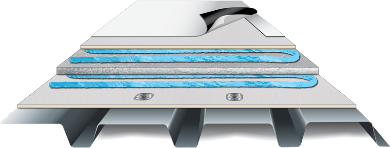 This schematic showcases Panasonic ADVANC-R VIP Insulation Panels being used in a fully adhered system application with HD polyiso insulation and Carlisle SynTec's Sure-Seal® Self-Adhering Technology (SAT) EPDM membrane.